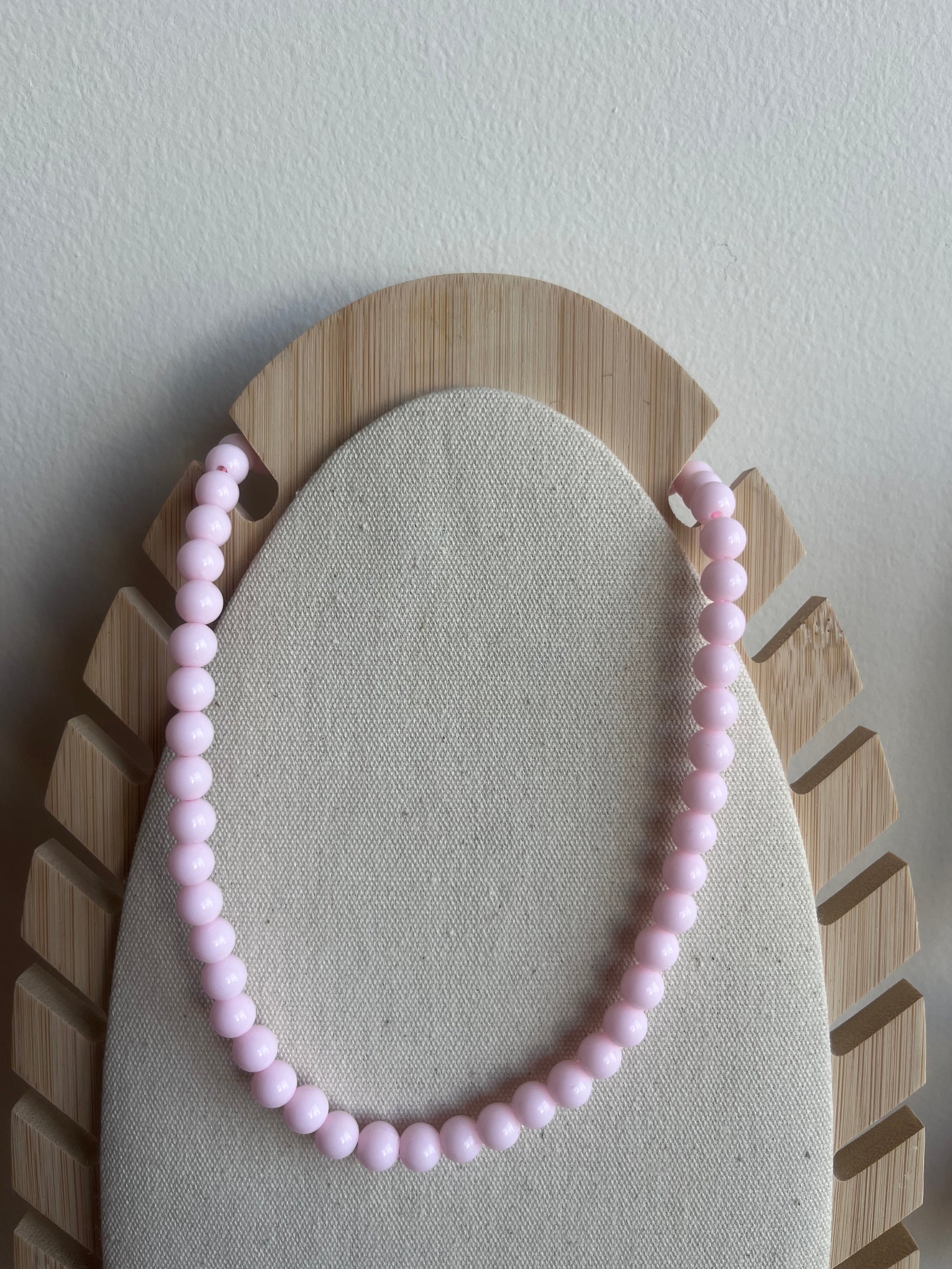 Este collar rosa muy clarito es la definición de estilo actual. Compuesto por delicadas bolas de 0,5 cm y diseñado para ajustarse cómodamente al cuello, es una pieza versátil que realza cualquier look. Su cierre de acero garantiza durabilidad y un acabado de calidad.